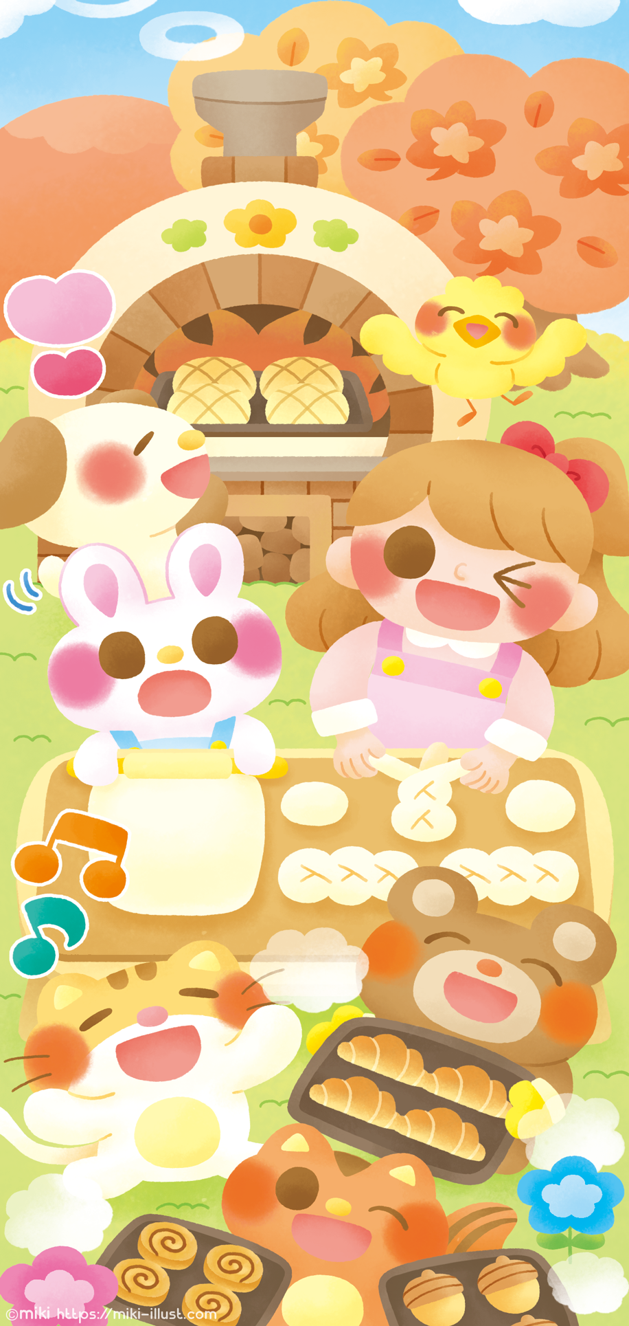 I drew a girl and animals making bread
