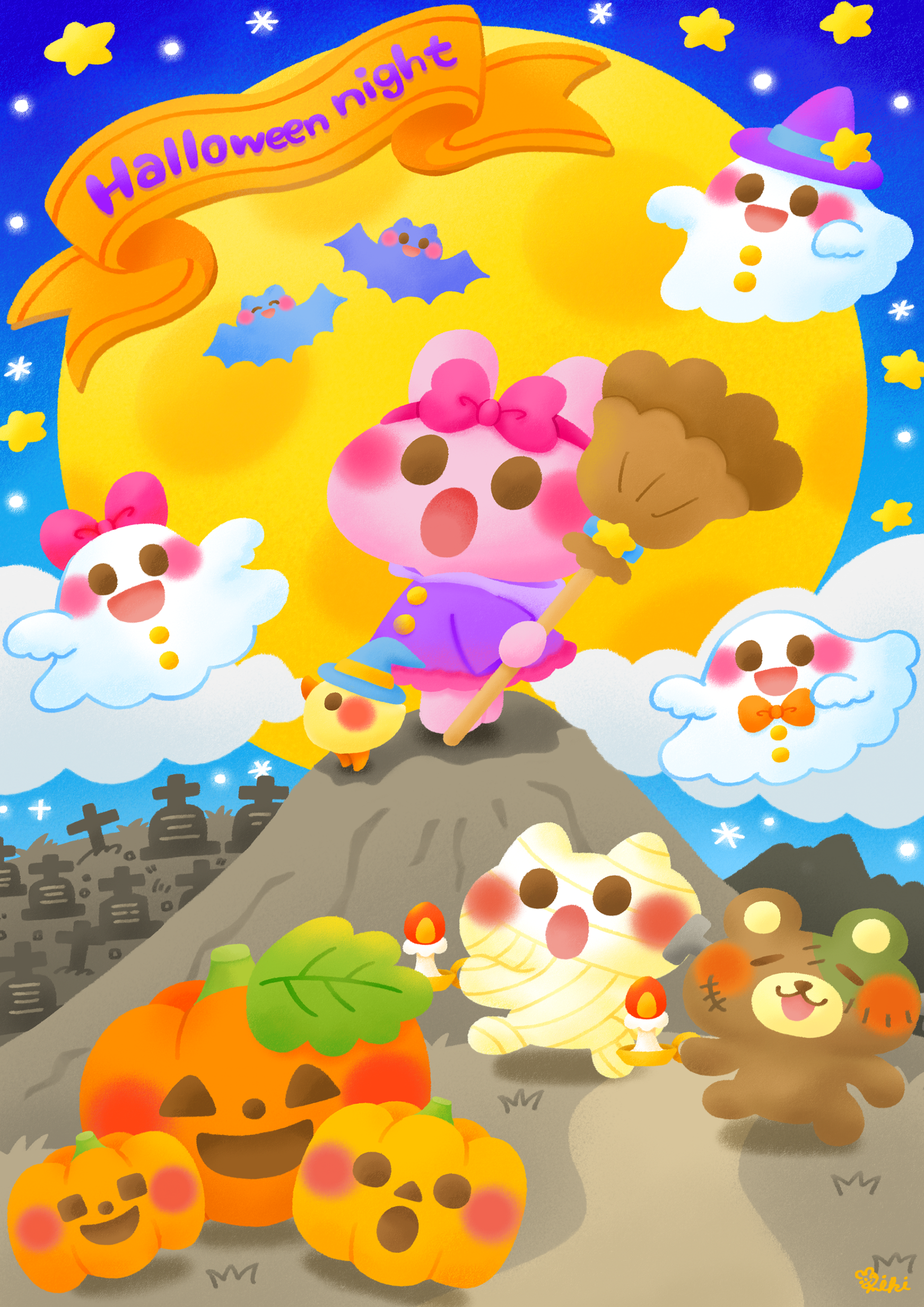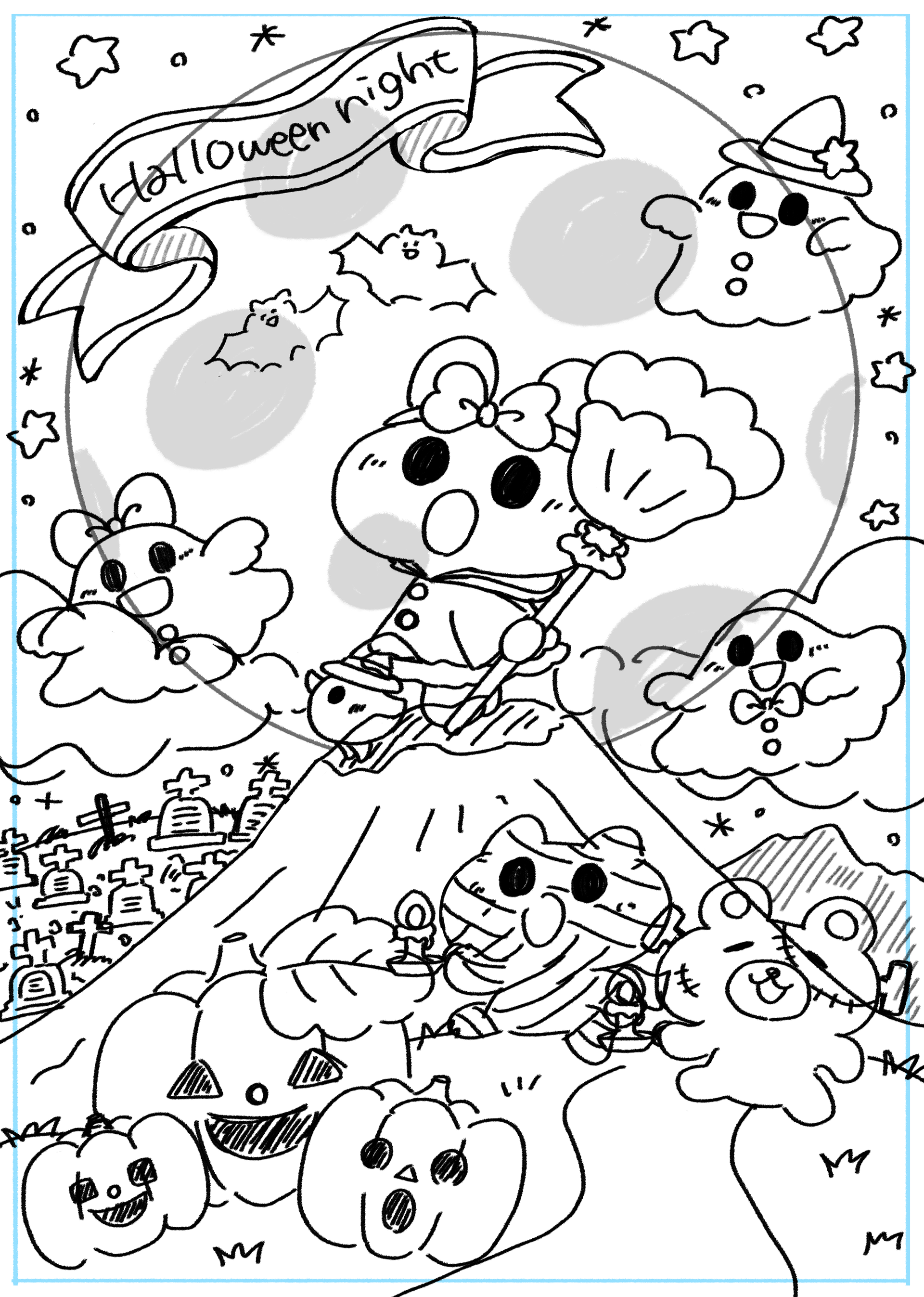 I drew a picture of everyone enjoying costumes on Halloween night