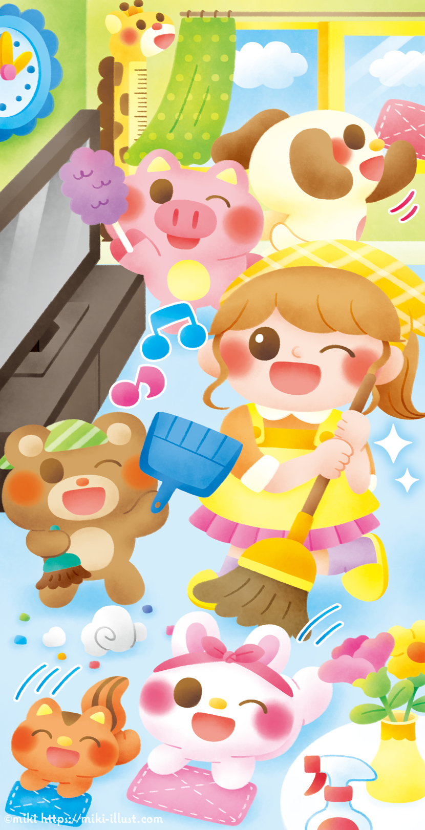 I am cleaning the house with my friends