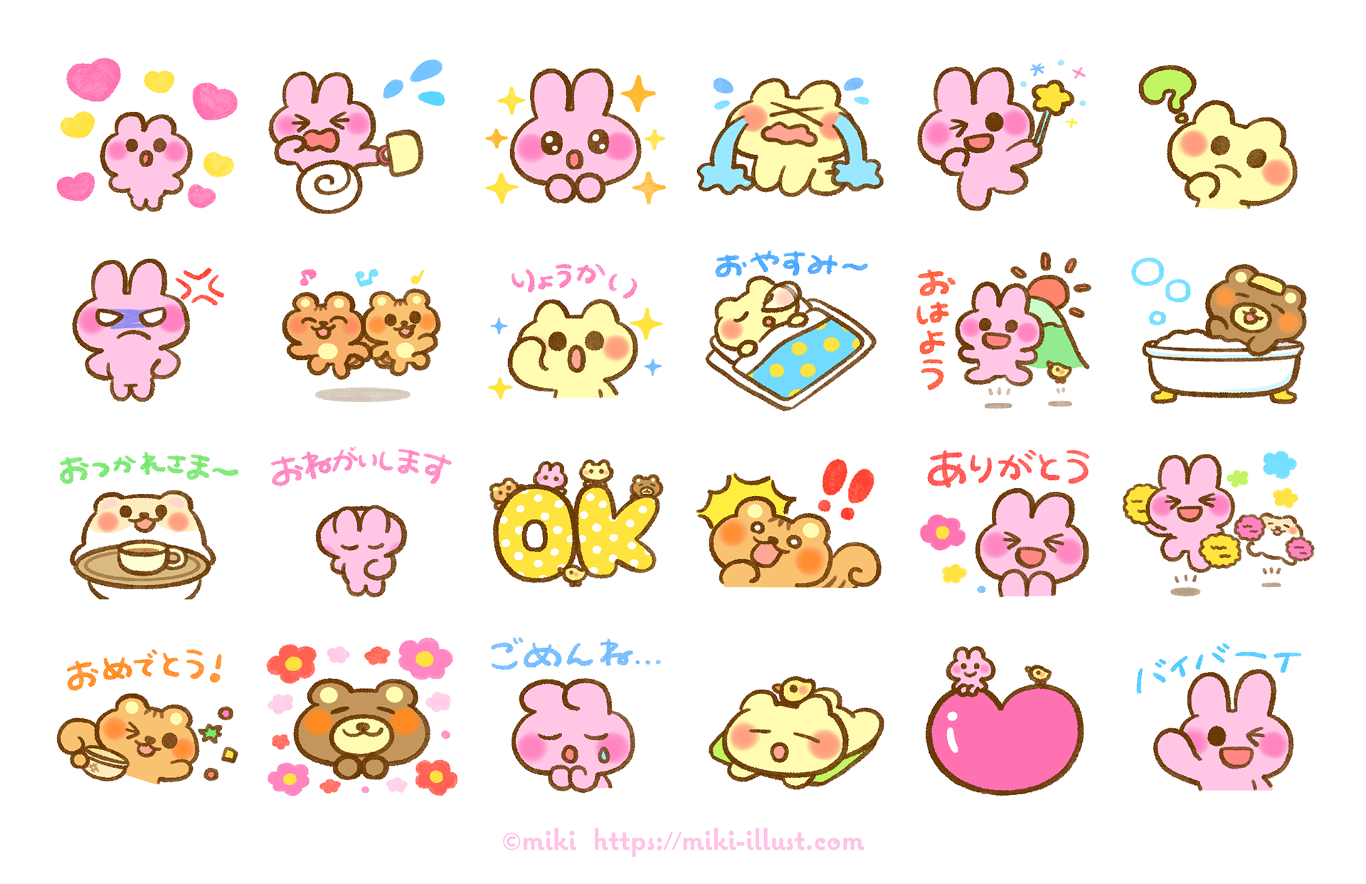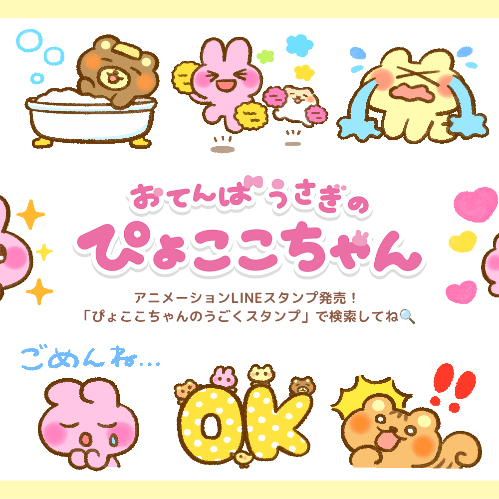 Introducing moving stamps of "Pyokoko-chan the tomboy rabbit" ♪ Together with her fun friends, she conveys greetings and everyday conversations through animation! https://store.line.me/stickershop/product/28769014/ja