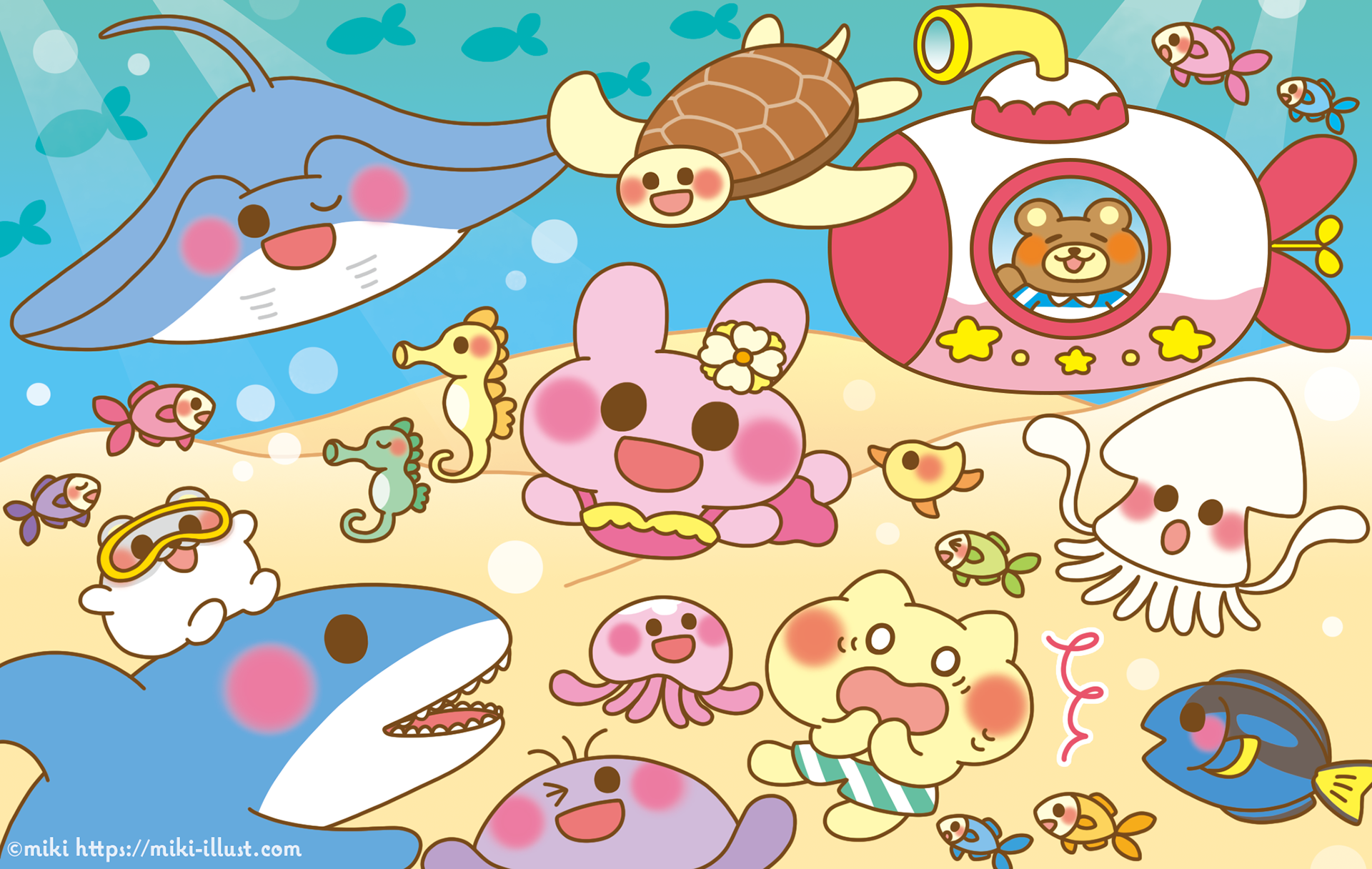 Animals are adventuring in the sea world with their sea friends.