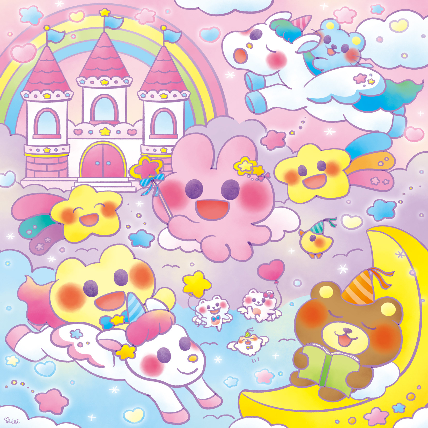 Animals flying around in a dreamy world